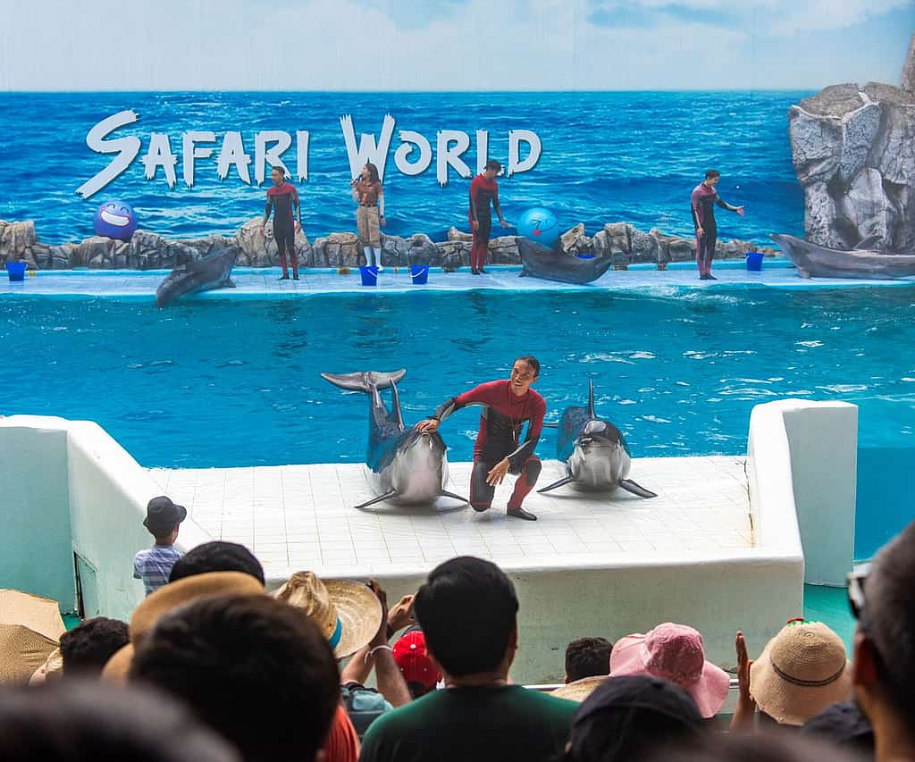 Meet our representative at **8:00 AM** and enjoy a full-day family-friendly wildlife experience at **Safari World Bangkok**, one of Thailand’s most popular open-zoo attractions. The park is divided into two main areas: **Safari Park** (a drive-through open-air safari) and **Marine Park** (animal exhibits and live shows). Expect a fun mix of wildlife viewing, entertainment shows, and photo opportunities, with **lunch at the park restaurant** included. Return to your hotel is typically **around 5:30 PM**, depending on traffic and drop-off order.