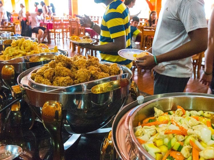 Lunch is served at **Koh Panyee (the Floating Village)**, a unique stilted community in the bay. If timing allows, there may be a short stop at **Wat Suwan Khuha (Monkey Cave Temple)** to see the reclining Buddha inside the cave and the resident monkeys outside.